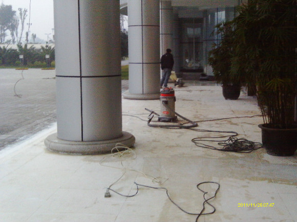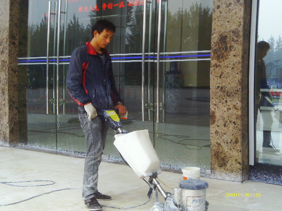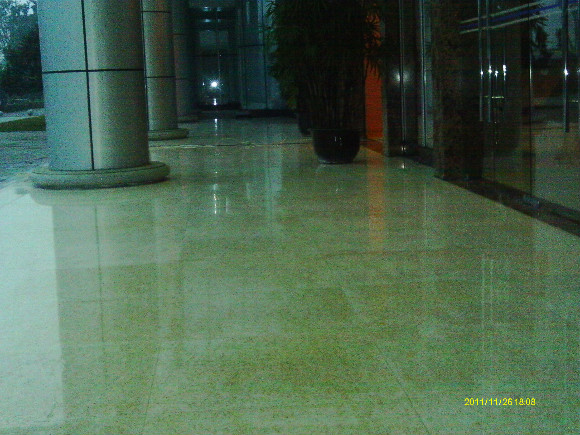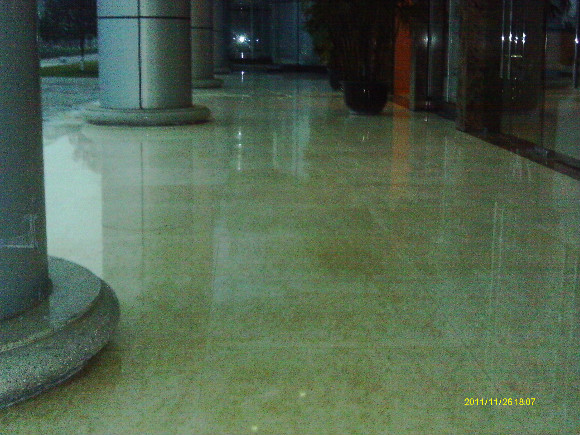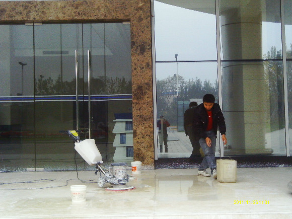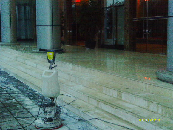 到了70年代末,一種可塑性水溶性結(jié)晶聚合物的誕生,亦即是現(xiàn)今常說(shuō)的水蠟,進(jìn)化了石材護(hù)理的歷史,可以利用這種物質(zhì)對(duì)不同材質(zhì)的大理石進(jìn)行護(hù)理。分底蠟(封蠟),面蠟(拋光蠟)及保養(yǎng)蠟(日常修補(bǔ)蠟)是對(duì)大理石的塑層進(jìn)行保護(hù)并利用高速拋光來(lái)增亮,對(duì)石材的保護(hù)起到一定的作用。但是這種水蠟不足之處是蠟層的硬度有限,稍欠保養(yǎng),腳步帶進(jìn)的塵土將很容易把蠟層及石材磨花。同時(shí),遇上雨水季節(jié),因室外雨水塵埃會(huì)有一定的雜質(zhì),通過(guò)人的腳步帶進(jìn)后,對(duì)蠟層的分子組成將造成一定的影響。直觀看到是蠟層變黃及缺光澤,也就是以后常見(jiàn)到的許多客戶為什么須經(jīng)常將腐蝕的蠟層用起蠟水脫去,再重新分工序打上底蠟和面蠟,每次的工作量及耗用的物料較大,這種工藝現(xiàn)市場(chǎng)上很普通,我們稱(chēng)為石材打蠟第二代。