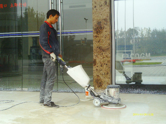 再到80年代末,緣自歐洲程序的一種工藝,“晶面處理系統(tǒng)”于90年代推進(jìn)中國(guó)市場(chǎng)。這個(gè)系統(tǒng)就是針對(duì)水蠟工藝上硬度、光澤、清澈度不夠及工藝復(fù)雜等不足改良而成的,其工藝原理就是在石材投入使用及未受磨損前,以幾種水晶加強(qiáng)劑配合機(jī)械,利用石塊籍壓于熱力產(chǎn)生之化學(xué)作用,先將石材表層下的氣孔封閉,使其污垢不能滲入,同時(shí)表層上加上幾層熱處理保護(hù)層,起到增加石材表面的硬度和光度,更有防滑之功效,石質(zhì)原有天然色澤得到帶出及全面性保護(hù),保持度教一般水蠟高幾倍。長(zhǎng)期使用,耗用的人力物料成本較水蠟低,無(wú)須每天補(bǔ)蠟及定期起蠟等復(fù)雜工序,此工藝為目前大理石保養(yǎng)及翻新后晶面的理想工藝,我們稱(chēng)為石材打蠟第三代。